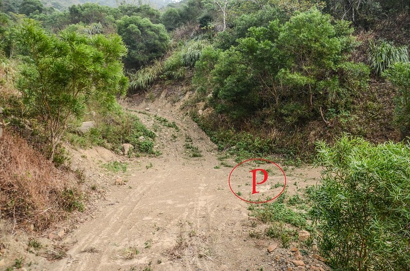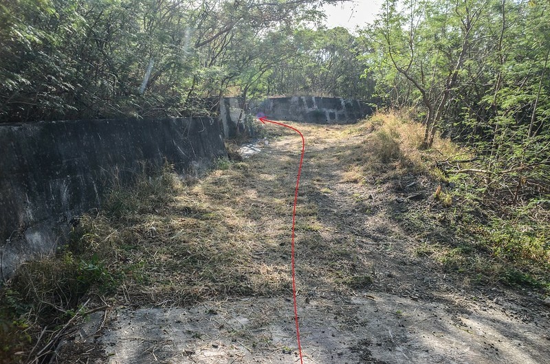 再行約150公尺水泥路終止轉為土石保線道,非四輪傳動車最好停此,座標220258 2446097,海拔51公尺;