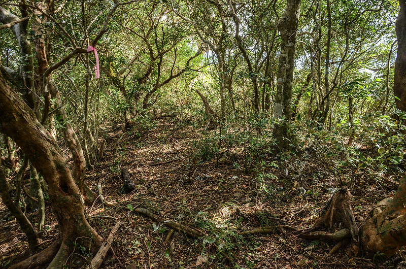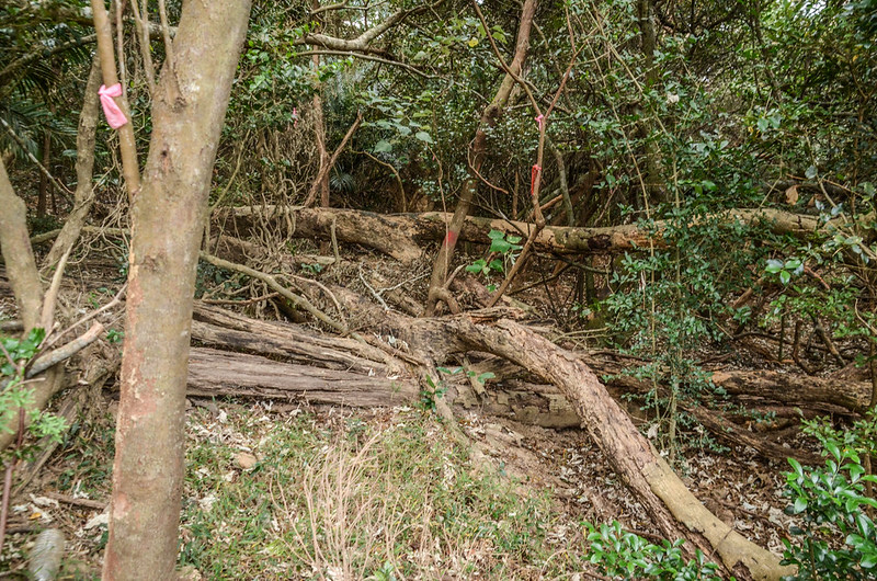 雜林已被砍出一條小徑並綁有密集的路條,走來還蠻順暢的。