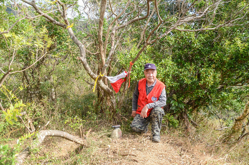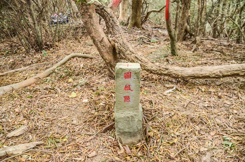 基點處不是最高點,而是在尾稜稍低一處寬稜處,此點是山友阿倫於去(2022)年09.10找到的,今日順道來造訪,基點處密林無展望,拍照後循原路下山。