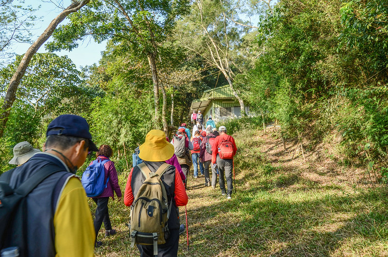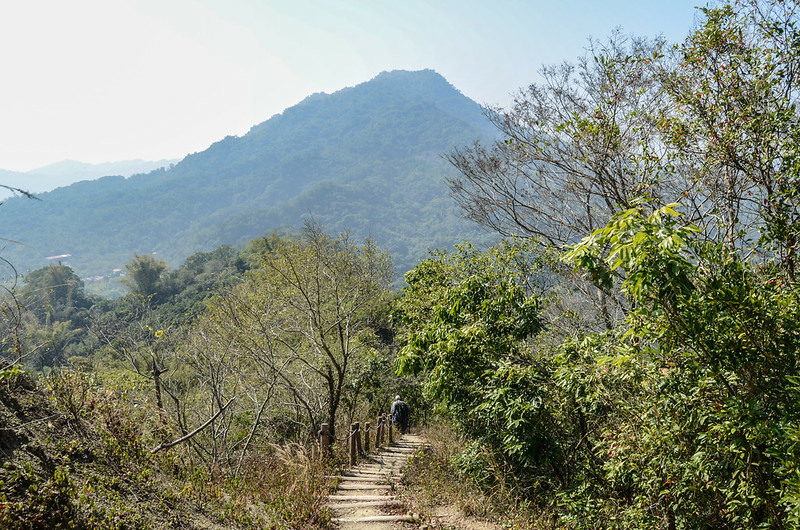 此後一路在主稜稜脊上由西南往東北爬升,開始一段是平緩的寬敞步道,左側可俯瞰南化水庫。