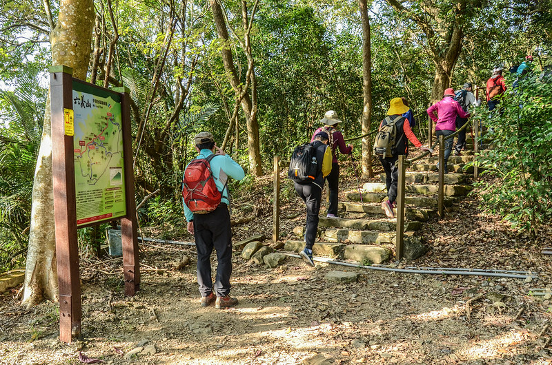 六義山山勢呈南北走向,為高雄、台南兩市界山,六義山步道全長約4.35公里,步道仿日據時期古道沿山脊開發,採用自然生態工法設仿木紋樁路面,共有四處登山口,由北至南分別為四德、公館、百葉與紫霞登山口,縱走單程約花費三小時左右;登上山頂俯視甲仙鄉景,觀賞南化水庫,彷彿倘佯在大自然的圖畫中,實為登山健行愛好者絕佳去處。