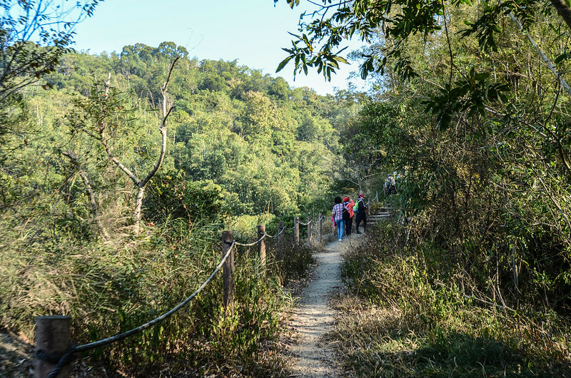 08:53 紫霞登山口出發,沿著兩旁有繩子護欄的石砌階梯上行,坡度有點陡。
