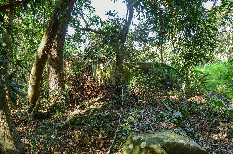 樟樹林行約百公尺後路左有一座大圓形水泥製蓄水槽,看似已廢棄不用;