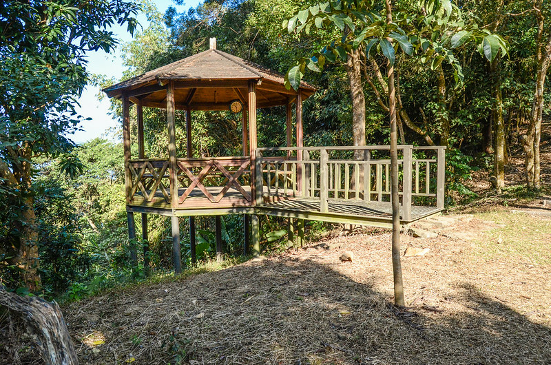 09:52 步道右側崖邊有一座八角涼亭,東南邊應有良好展望,可惜大樹擋住了大部分的視野;