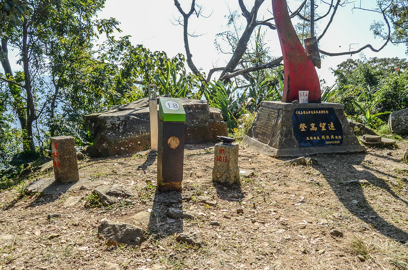 山頂除了一座紀念碑外,重要的是立有一顆編號5015號的三等三角點,座標205168 2554117,基點旁另有一根編號曾文溪水源28的水源保護區界水泥樁。