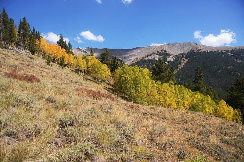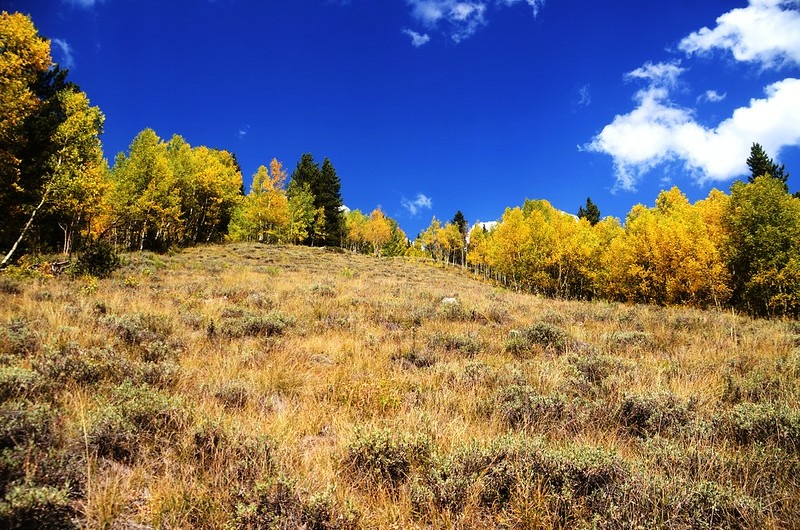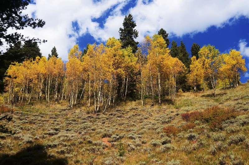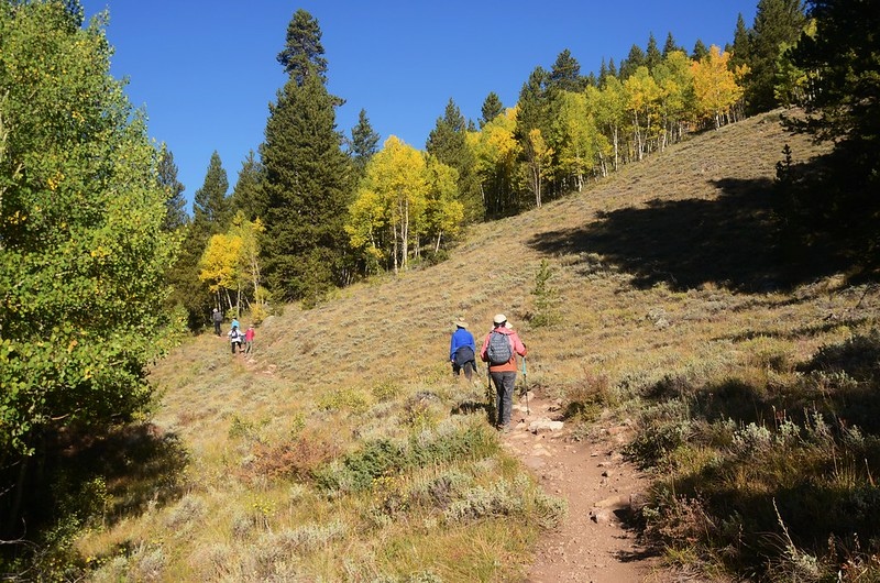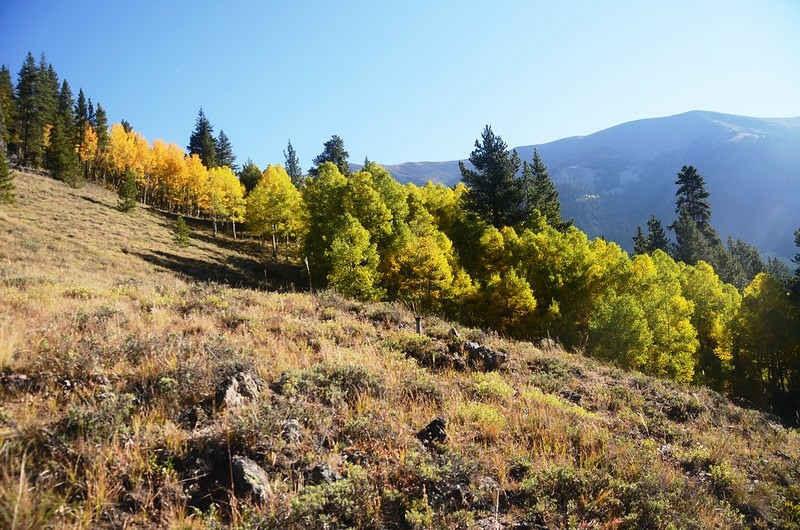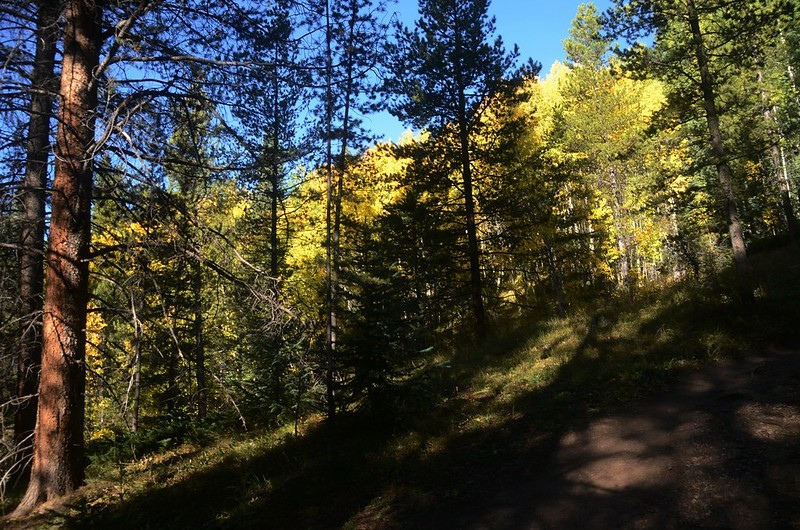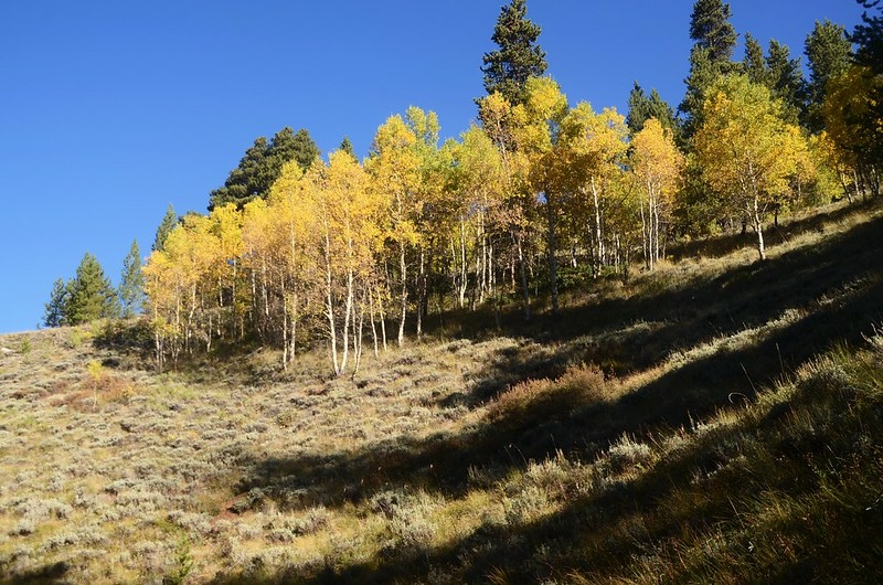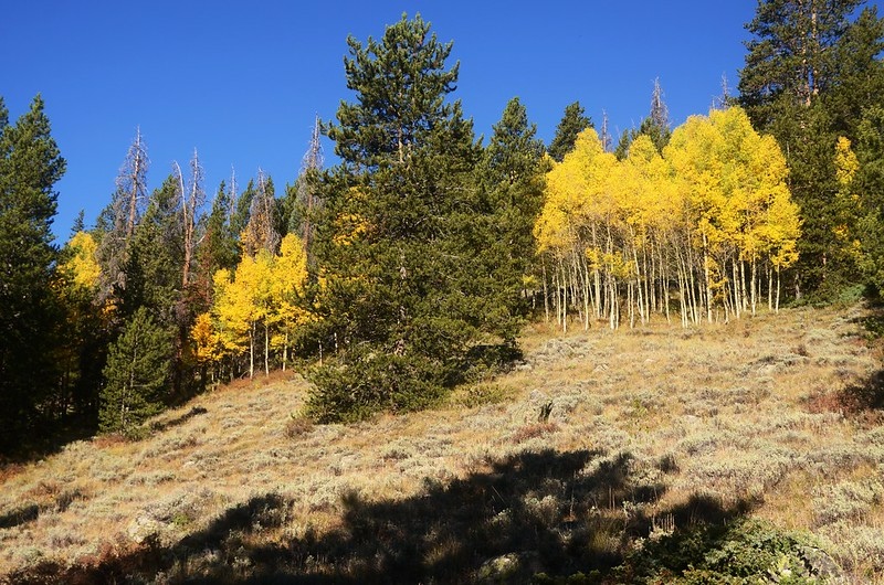 此後一路在白楊木(aspen)和黑松(lodgepole pine)林中爬升。