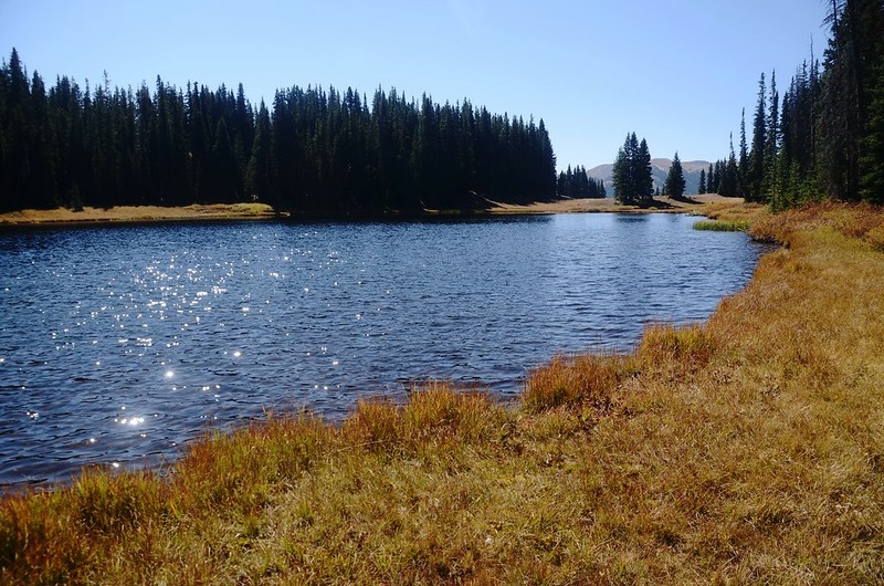 10:27 抵達第一座Wheeler Lake,座標N39.52044° W106.16792°,海拔11,067呎/3,373公尺,距登山口3.5哩/5.63公里;