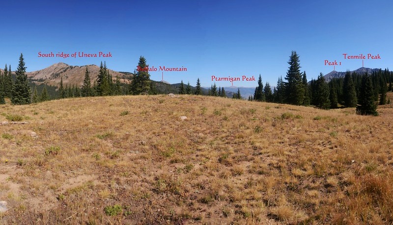 東北望Buffalo Mountain和Tenmile range的Peak 1和Tenmile Peak;