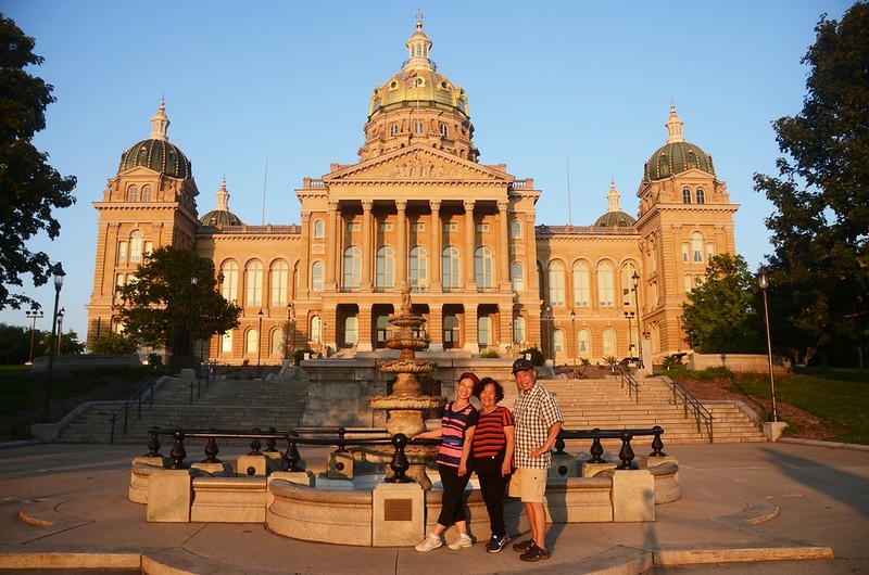 18:50 抵達位在Des Moines市的愛荷華州議會大廈(Iowa State Capitol),停留拍照後續往今晚住宿民宿。