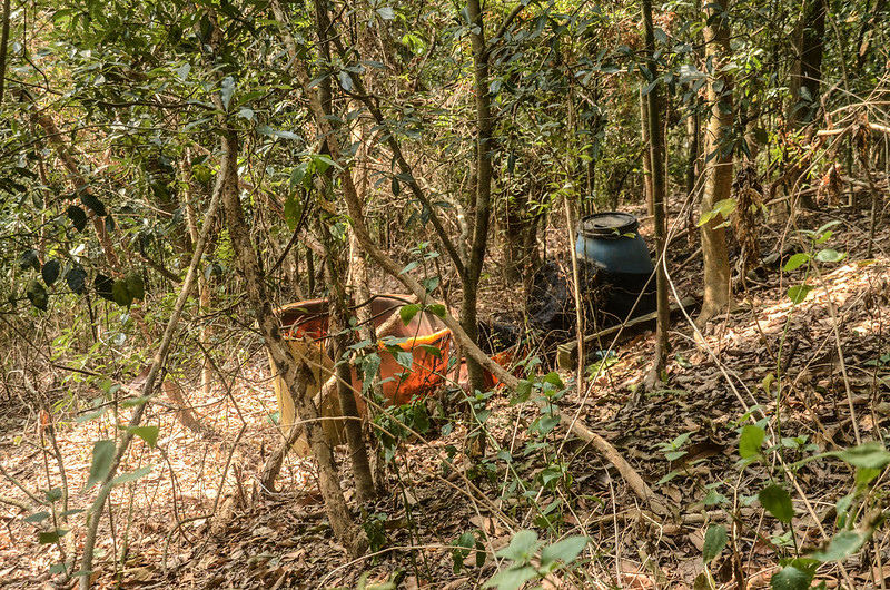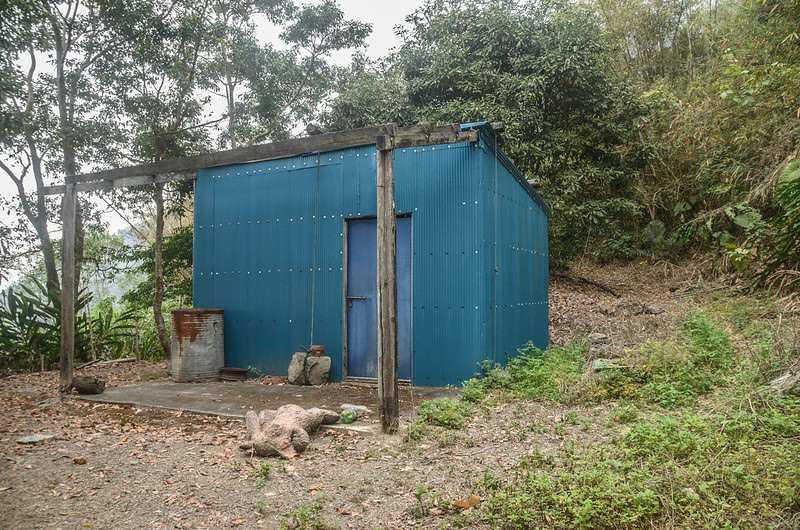 行30公尺再遇岔路取左岔續行,行不久產道轉為土石路面,一路行約750公尺抵路底工寮前岔路,取右再行50公尺抵路底工寮停車,座標216333 2473263,海拔705公尺。