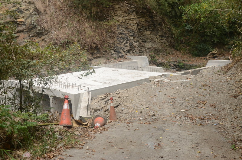 12:00 停車處出發,行約200公尺抵第一處橋樑施作工程處,施工人員說再過幾天就完工了!過了施工處後沿水泥農路續行,