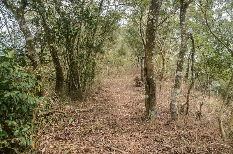 現場僅一條四年前大榮大大的登頂條(一個人的山徑);山頂都是密集的灌木叢,毫無展望,拍照後循原路下山。