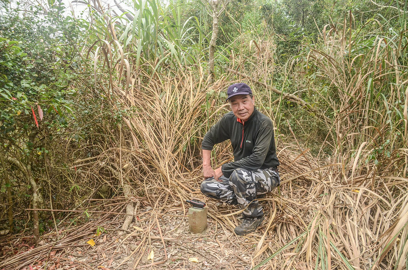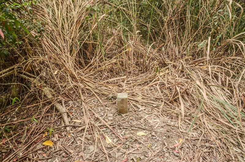 行約30公尺後抵基點處,基點原藏在菅芒草叢中,現已被清出明顯好找,拍照後循原路下山。