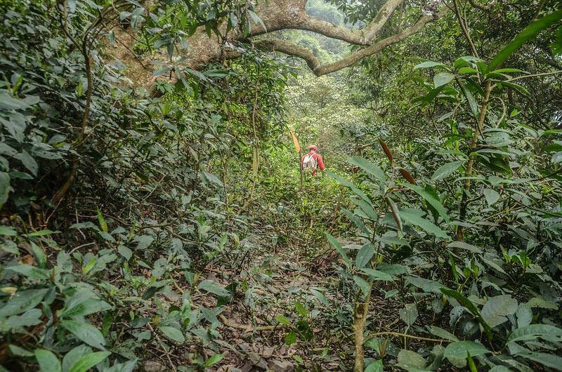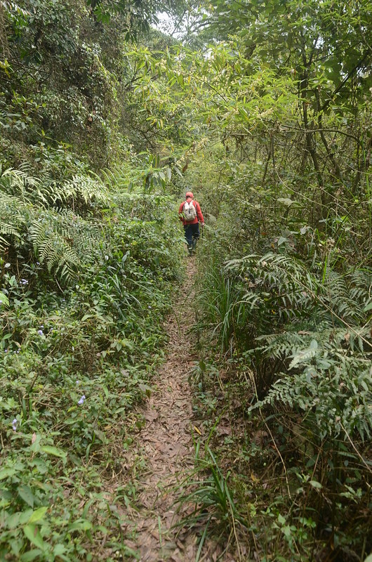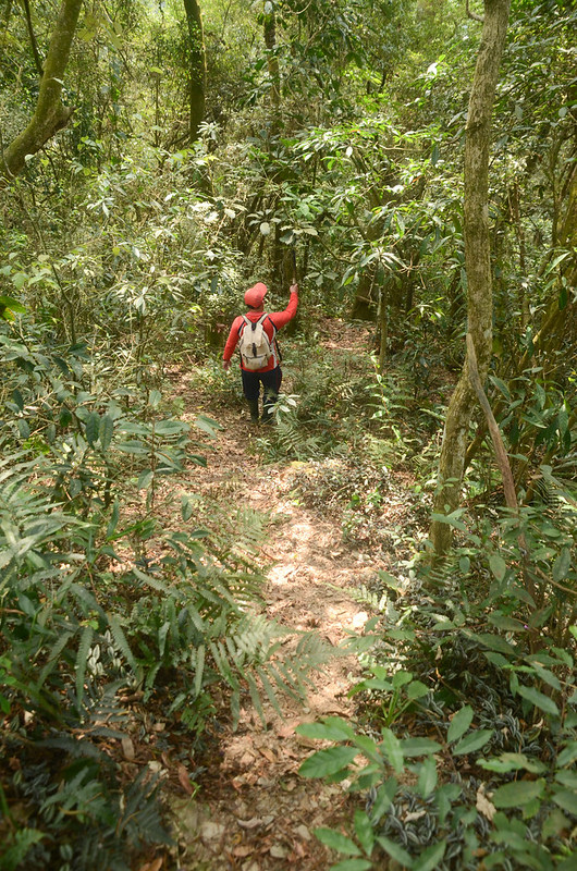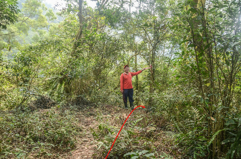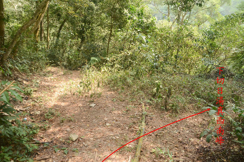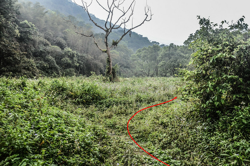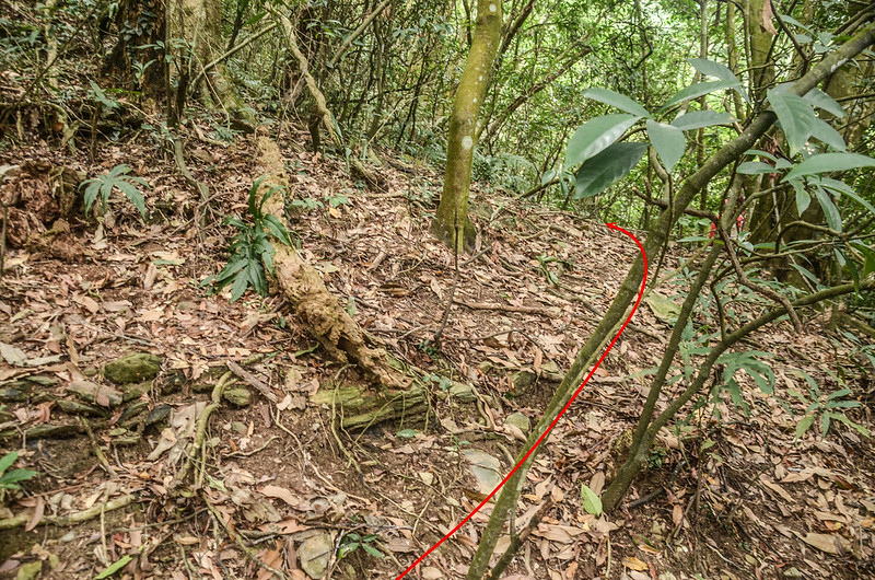 過了荒廢開墾地沿著小徑(應該是廢產道)在山坡下朝東南腰繞,路徑清楚好走。