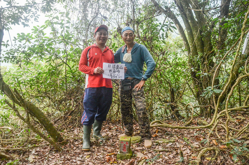 12:02 登頂日湯真山西南峰(萬安山),在一處肩稜上找到日湯真山西南峰(萬安山)冠字補近(30)的山字森林三角點;
