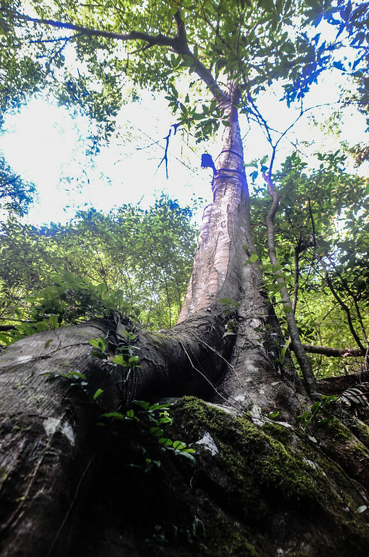 小平台南端樹幹上釘有一面小東河步道5號救援樁牌子。