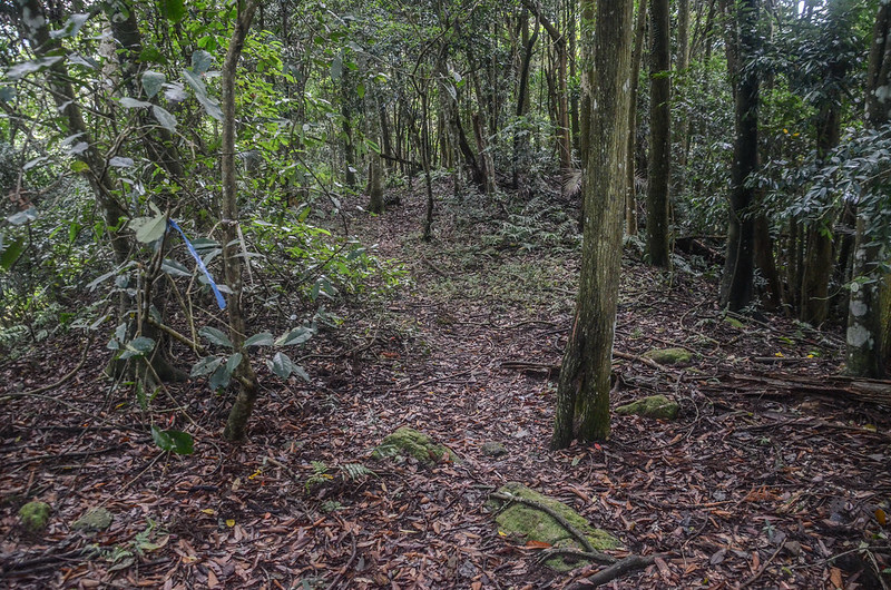 10:41 登上小東河山前平緩小肩稜,肩稜平緩,座標248708 2717297,海拔816公尺;山徑隨即緩下坡。