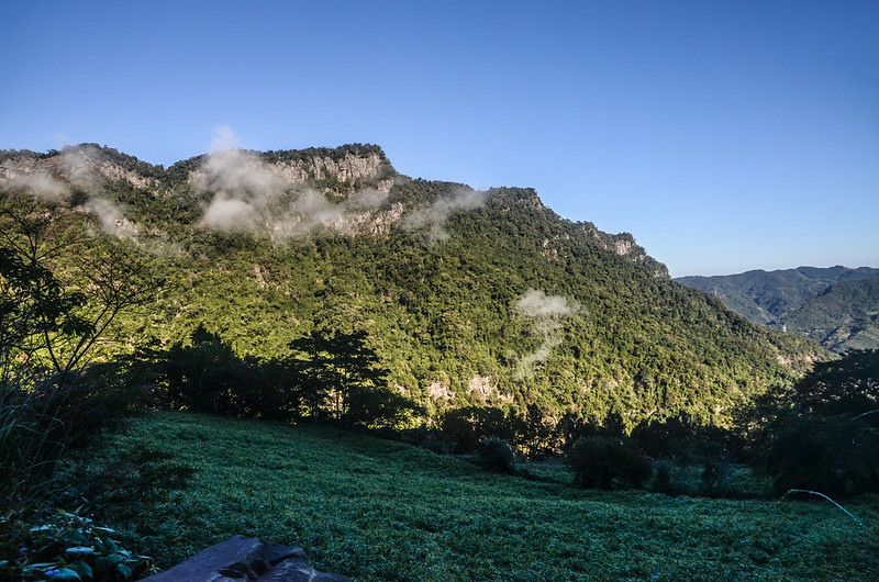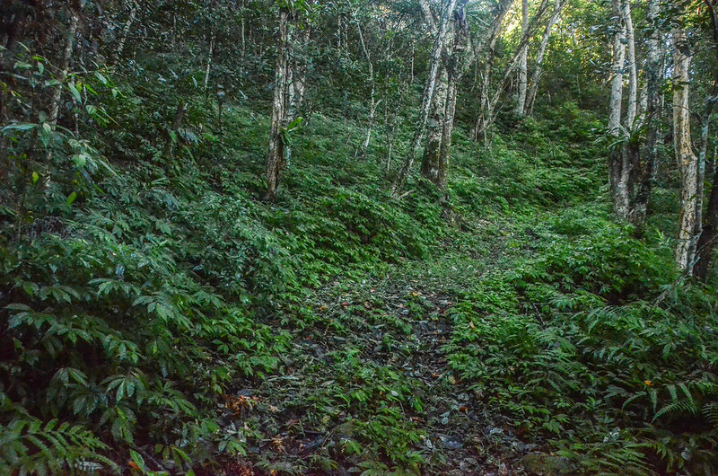 越過第二乾溪谷後沿優美的原始林相山坡上行;