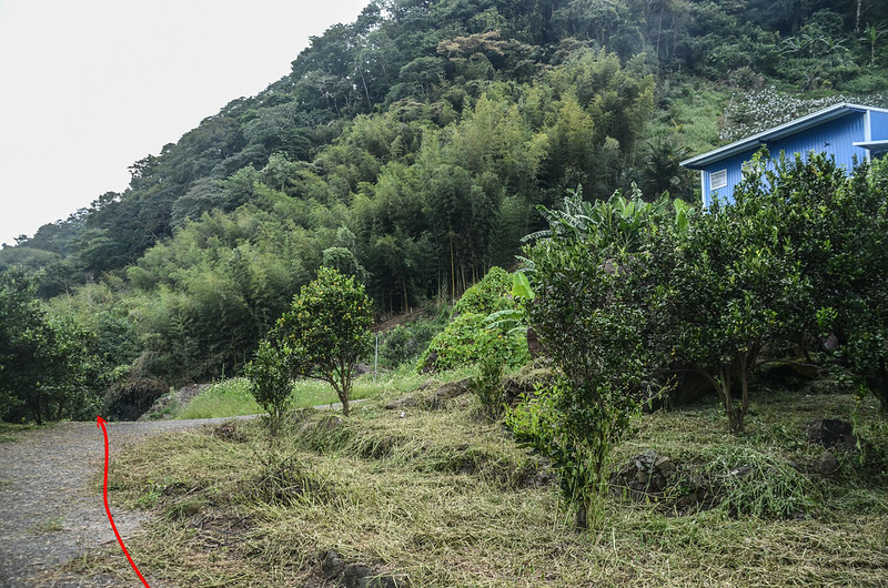 取直朝果園上行40公尺後脫離水泥農路右切入果園;