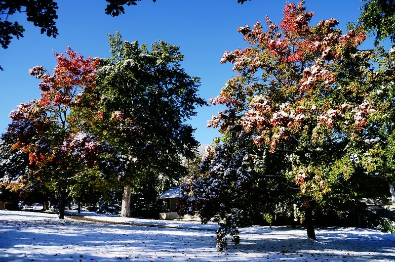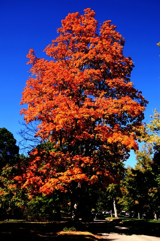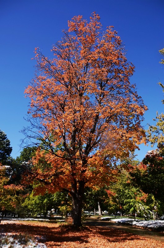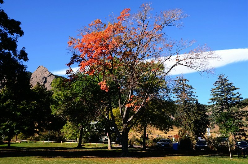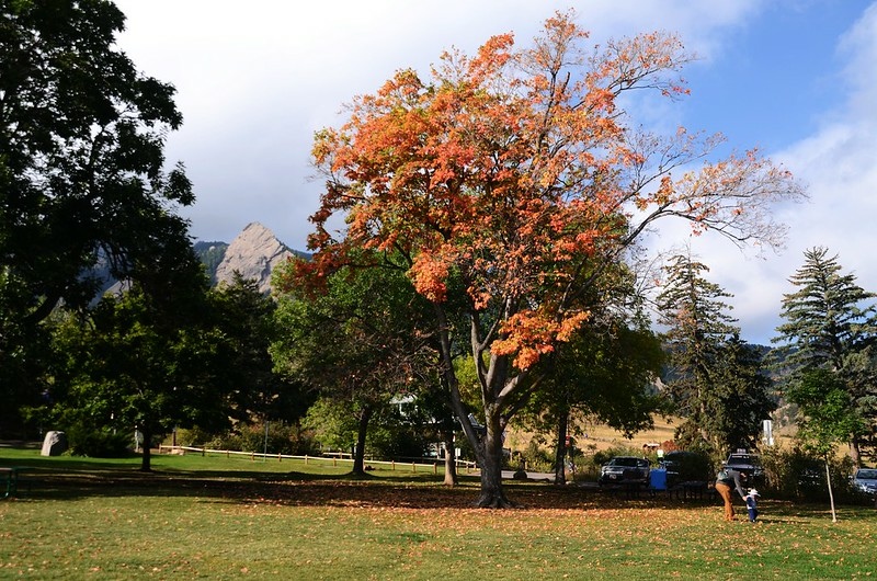 Boulder自1859年建市以後直至1860年移民們仍集聚在Pearl Street一帶的圓木屋,但隨著人口的增多,“The Boulder Land and Improvement Company”在Boulder的西邊現在的Mapleton Hill購買土地,準備開發新社區,當時公司會看中這裡是因為這裡地勢較高、排水良好、空氣清新,加上可南眺那令人驚嘆的Flatirons的景色;然而這裡的迎風面和貧瘠的土地也是遭人嫌棄的,該公司乃在此地種植了超過200棵的銀色槭(楓)樹(silver maple)和三角葉楊(cottonwood),以吸引購屋者;並且在1862年闢有一條渠道,蜿蜒地流經社區,可灌溉1500英畝 的土地;今日遊客到Mapleton Hill地區,你除了欣賞那19世紀末的復古式建築外,數百棵當初種植的銀槭(楓)樹(silver maple)和三角葉楊(cottonwood)也大多還存活著,粗壯的樹圍、挺拔的枝幹、似華蓋般的枝葉,矗立大道兩旁,綠蔭蔽天。每年的10月份是這裡最美的季節,楓紅滿天,走在大道上猶如置身綺麗世界中。
