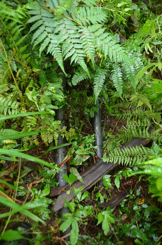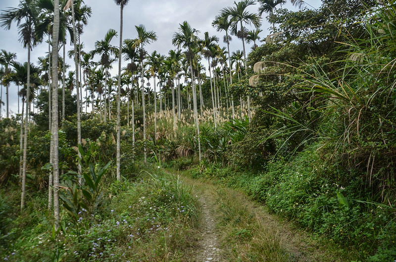 右轉朝西北小凹谷小徑上行,小徑有早期引水用黑塑膠水管伴隨;