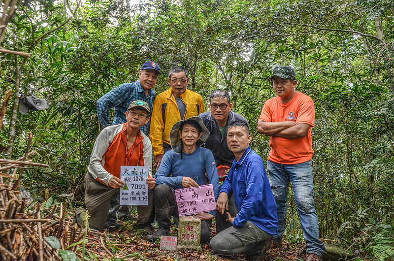 大南山標高1078公尺,山頂立有一顆編號7091號的三等三角點,座標248832 2518316。