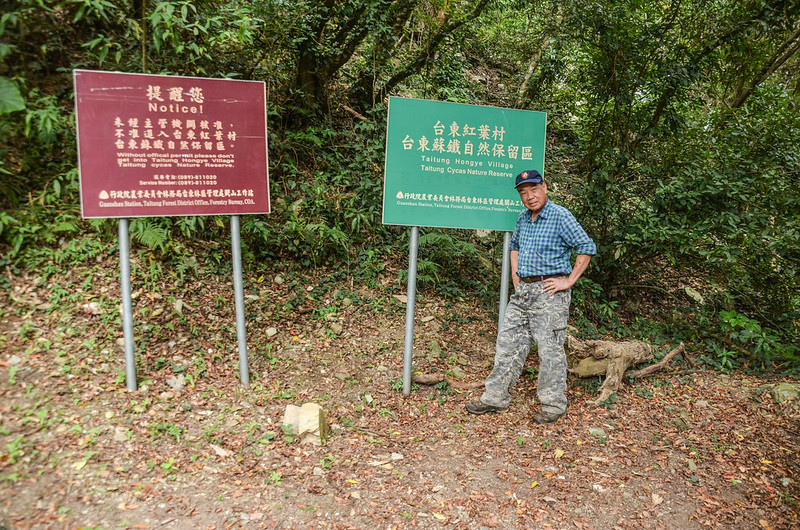 由大南山下山回到台9線左轉往鹿野北行,行至台9線里程357.3K處右岔台9線不取,取左直行往紅葉溫泉,左直行1.2公里遇岔路再取左岔東36鄉道往紅葉溫泉,東36鄉道行約2.0公里過紅葉橋,過了紅葉橋立即左轉再行1.3公里遇岔路,右岔東36鄉道往少棒紀念館不取,取左紅葉產業道路下行,紅葉產業道路行1.2公里在剛過上里橋後遇岔路取左行,再行300公尺遇右岔小水泥路時取右岔路上行,此後產道有大部分即是沿內本鹿古道修築;小水泥路上行400公尺遇岔路,座標254691 2531037;如取右岔上行150公尺可抵清水森林三角點山頭,我們取左岔續行,再行100公尺右側稜線上行40公尺即可抵清水森林點處,下山時再探;車子續行1.6公里將車停放彎路空地(253630 2530363)改搭王哥四傳車續行,再行800公尺抵達林務局所立蘇鐵自然保留區紅、綠兩面鐵牌處停車,座標253140 2530233,海拔494公尺;從台9線岔路口到此約9.1公里。