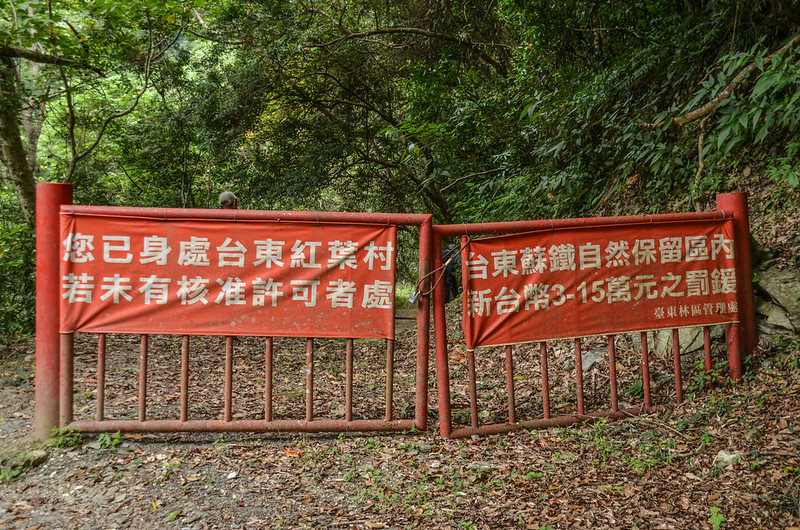 停車處沿產道續行200公尺抵達紅色鐵柵門;