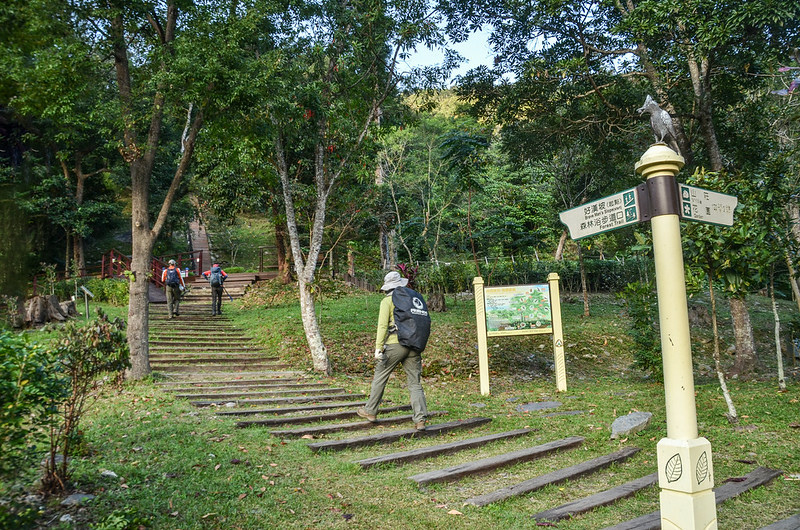 由台東沿台9線南行,行至台9線里程約391.15K時右轉194縣道往知本國家森林遊樂區,行約6.0公里後車抵樂林橋頭(東端),一般遊客車輛不能進入森林遊樂區,我將車停放橋頭,全部共乘王哥的車子進森林遊樂區,因王哥的座車有身心障礙停車位識別證可進入遊樂區,車子直開到遊客服務中心,少踢了600公尺的馬路。