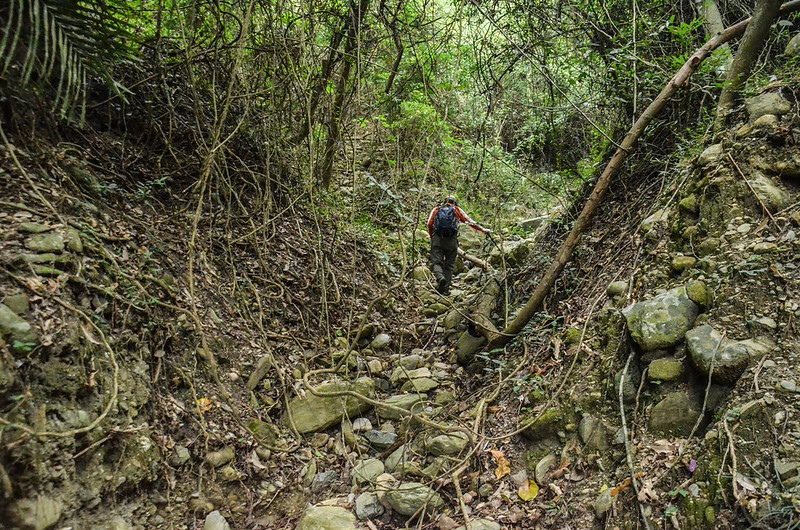 乾溪溝上爬約約170公尺後到乾溪溝的頂端直上入小樹林及草原坡;
