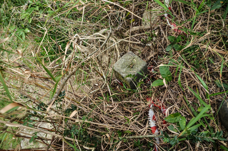 在山頭南邊斷崖邊緣看到類似被樹根纏住懸空掛著的補冲(60)山字森林三角點,座標263733 2530375,海拔304公尺;