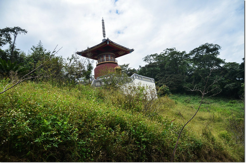 該寺似乎白天才開門,上次下午五點多來時大門深鎖又沒電鈴無功而返;進入寺廟與住持說明來意後沿水泥道路上行,行約150公尺稜線岔路取左上(右往多寶塔);