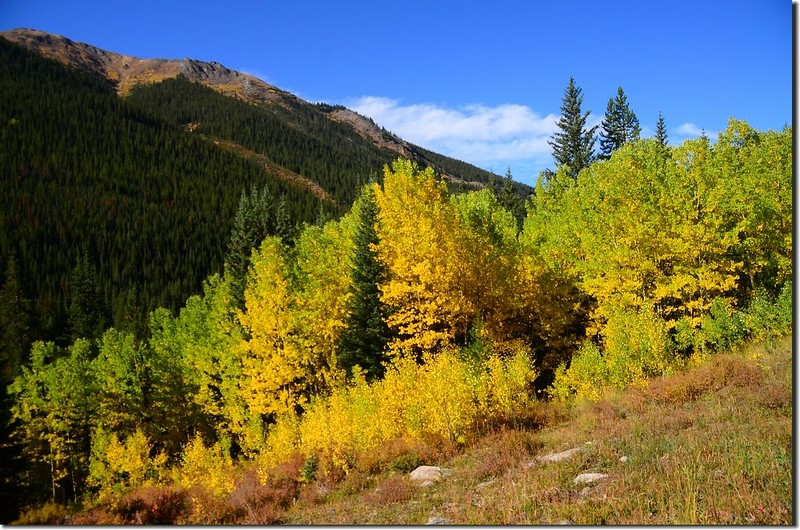 登山口及沿途的白楊木(aspen)葉子已轉黃,這個月是科州瘋白楊的月份。