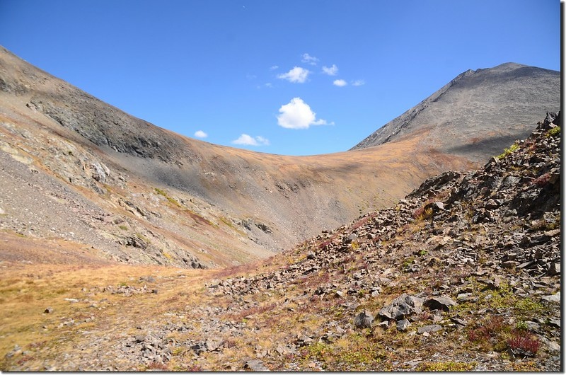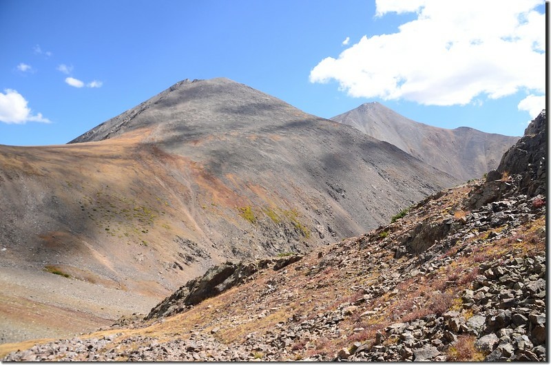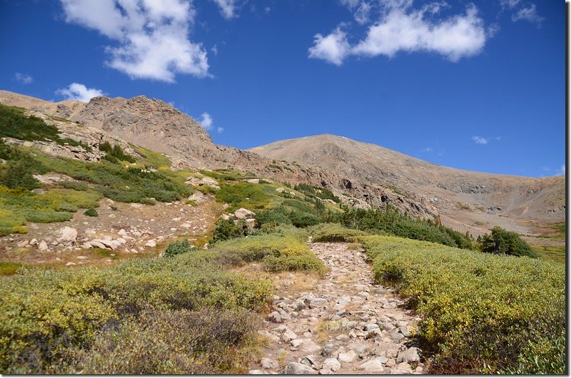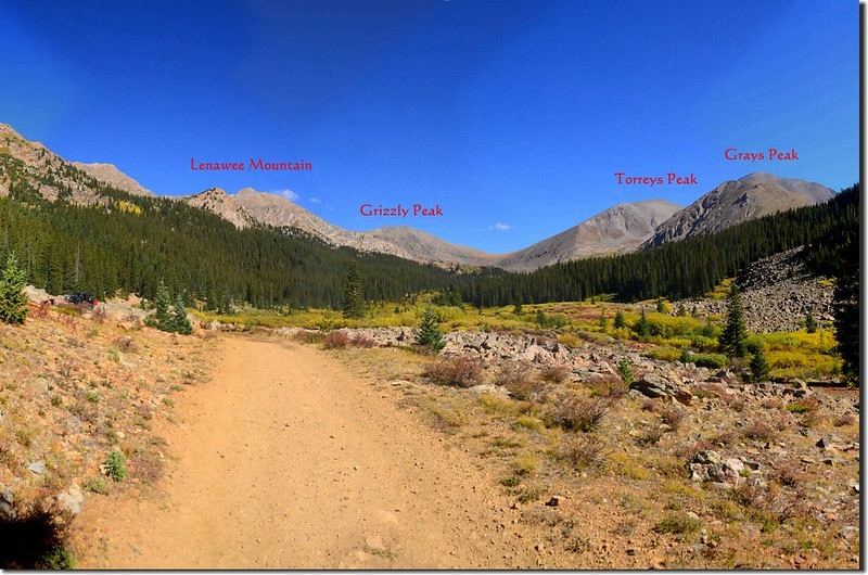 Looking back at Grizzlk (L) & Torreys (R) Peaks from Chihuahua Gulch Trail near 11,100 ft.