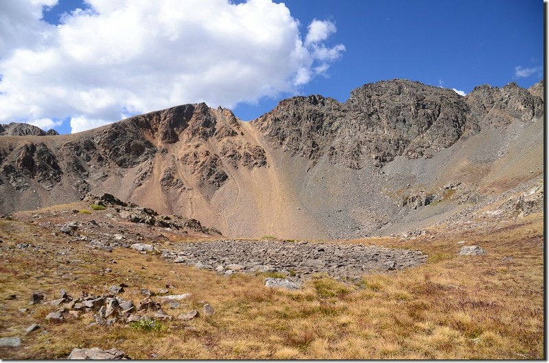 Looking north at Grizzlk Peak from Chihuahua Gulch Trail near 11,680 ft.