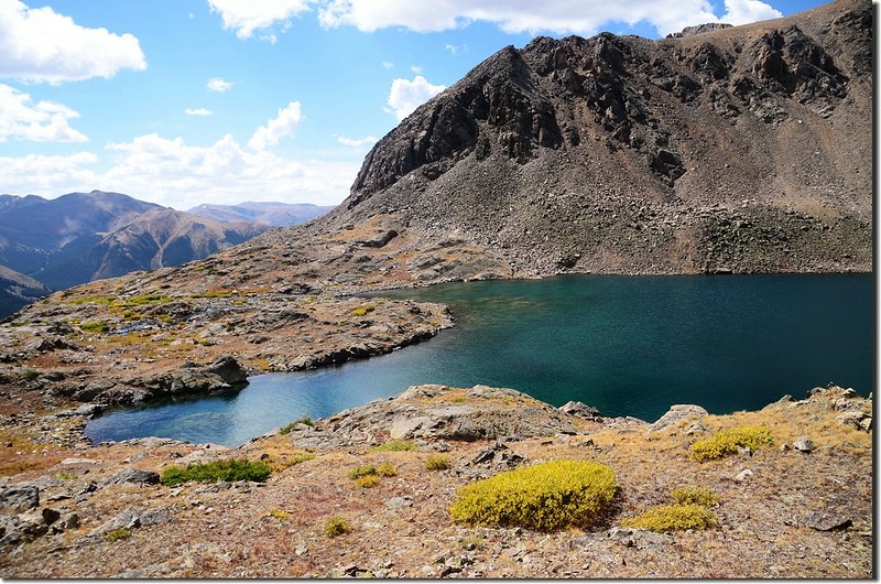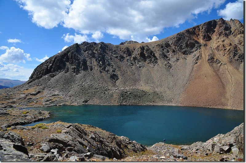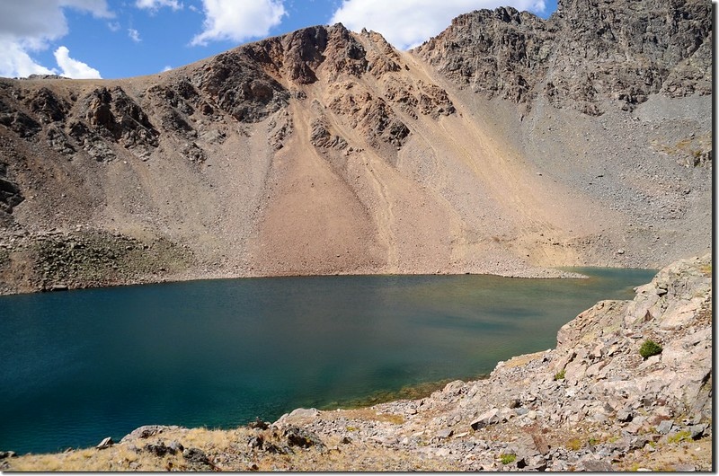 11:51 抵達Chihuahua Lake,海拔12,175呎/3,711公尺,距登山口約3.6哩,湖水深邃湛藍,北岸及西南岸則是山勢崢嶸的岩壁,東南岸則是開闊的出水口。
