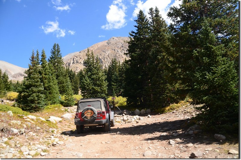 10:46 抵達Willow 灌木叢區,車道部分路段低窪積水,必須從Willow 灌木叢中繞道通過;此處海拔約11,160呎/3,402公尺,距登山口約1.7哩。