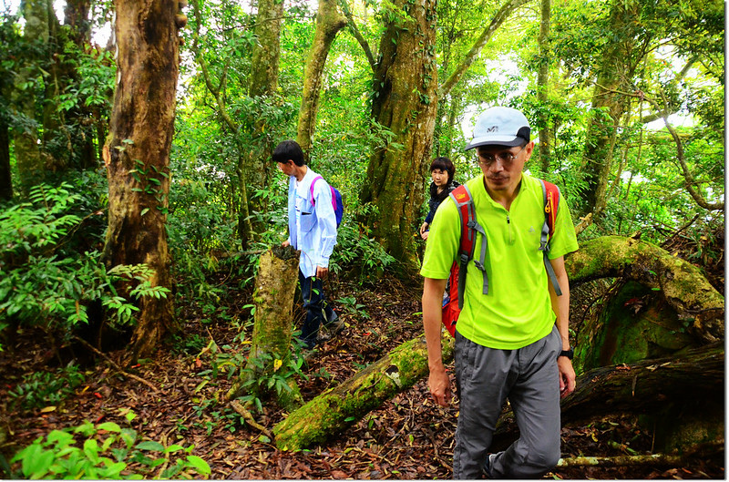 爬升約150公尺抵稜線後右轉朝高處上行,將抵最高點時有一棵大樹;