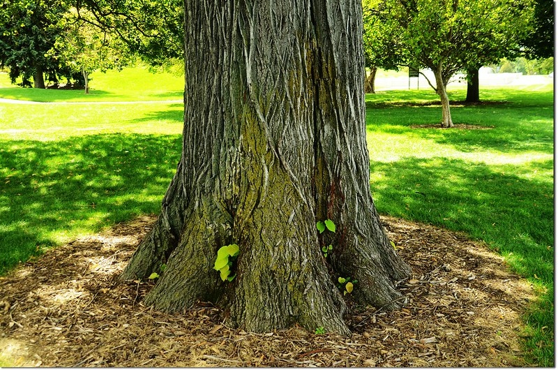 樹幹的皮呈灰色至褐色,較高齡的樹皮會裂開成縱溝槽狀。