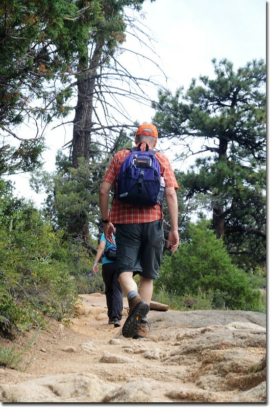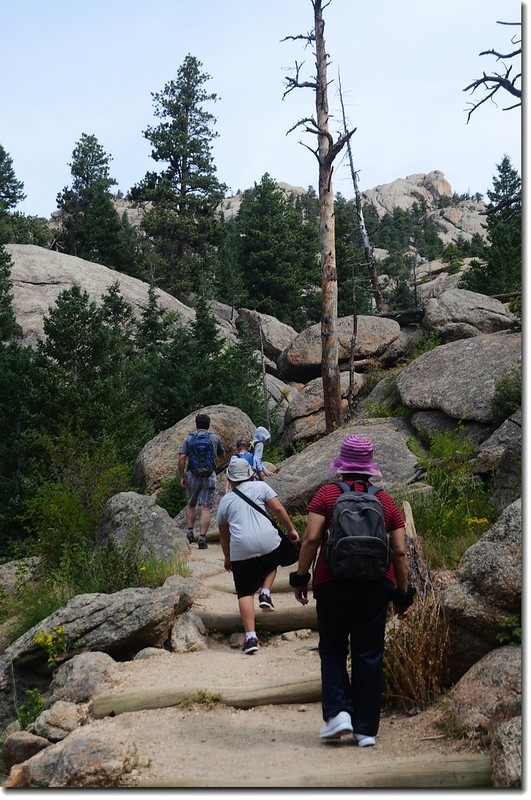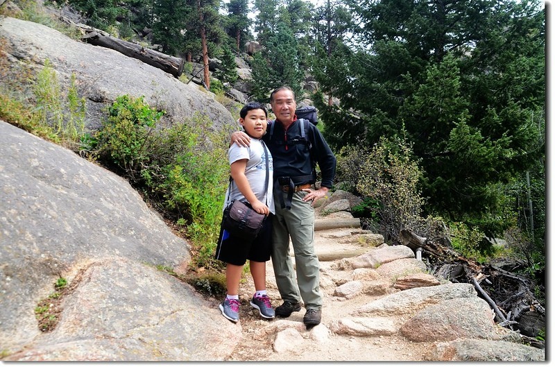 過了Paul Bunyan's boot之後登山步道轉小且陡,尤其是將登頂那一段路每個石階都在1~2呎之間,貝貝邊爬邊抱怨說為什麼石階做得這麼高,有時又自我解嘲的說腿太短了,我和太座聽了都不覺莞爾一笑!