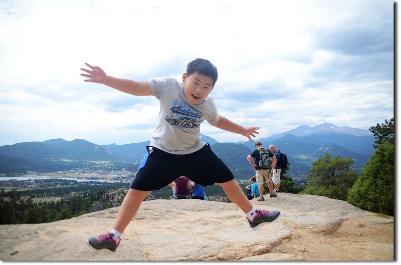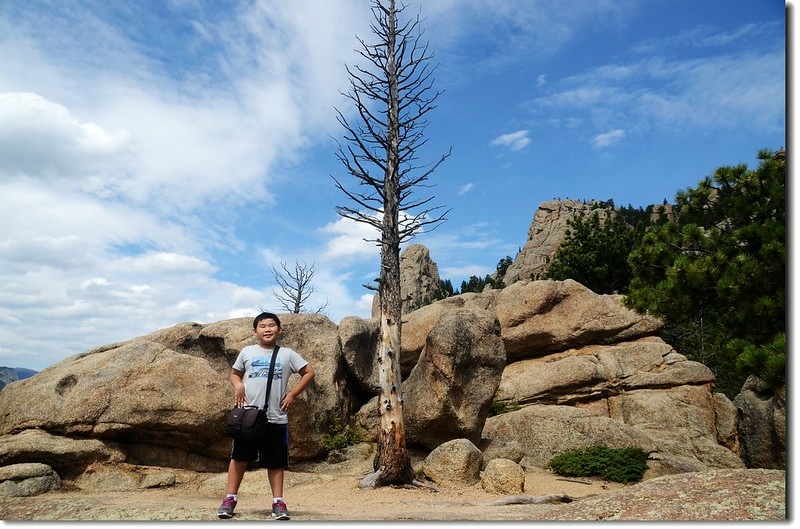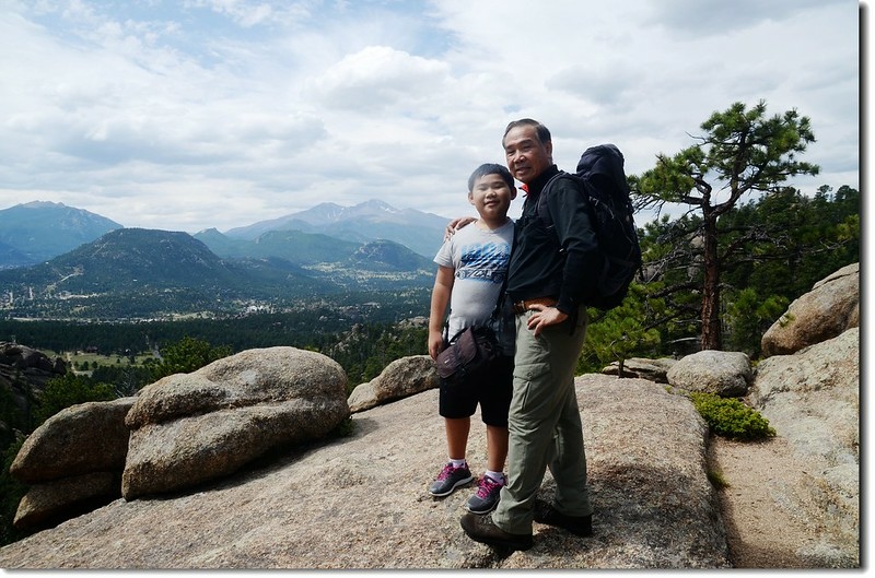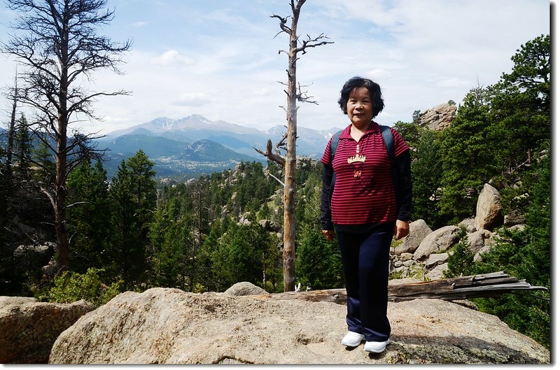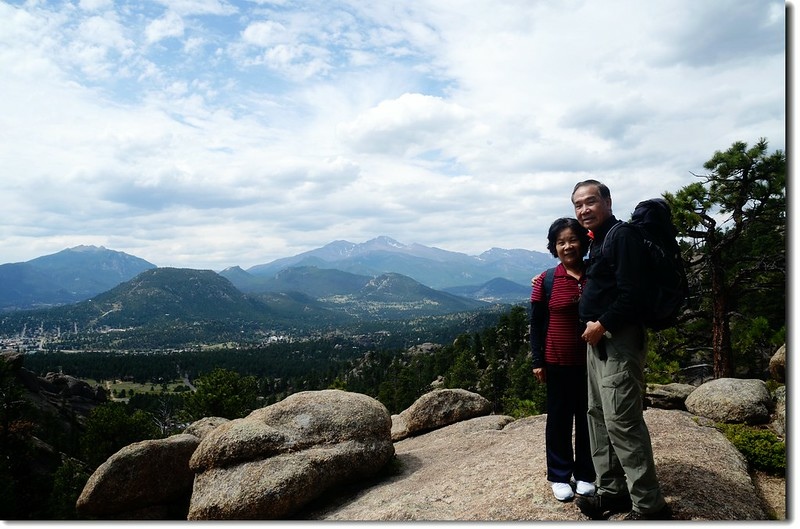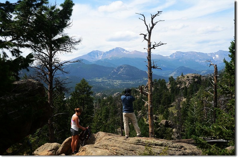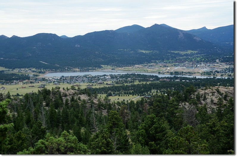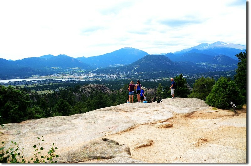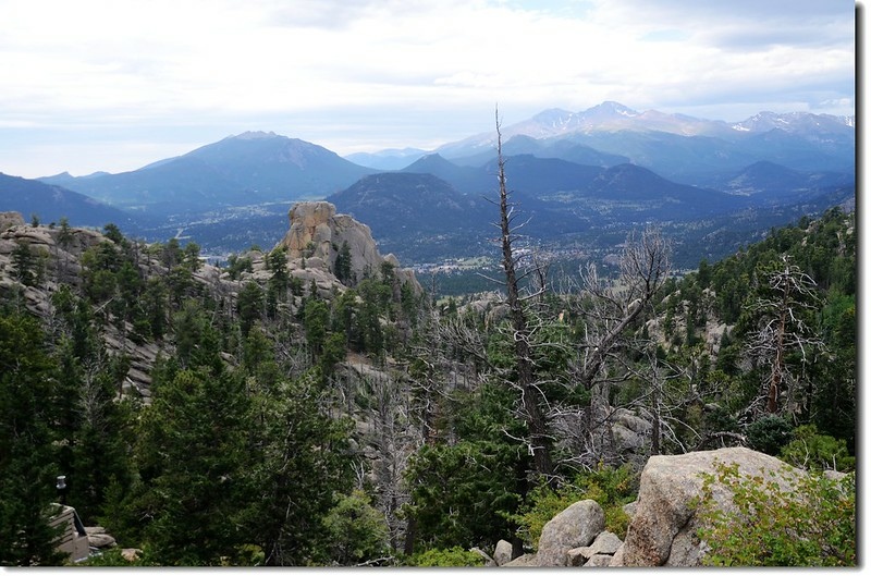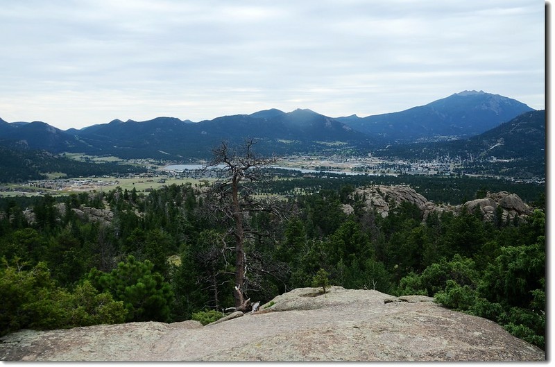 岔路口行不遠穿過一片松林,偏離步道在右側崖邊有不錯的展望,可清楚俯瞰Estes valley及遠眺Longs Peak及Twin Sisters Peaks等高山。