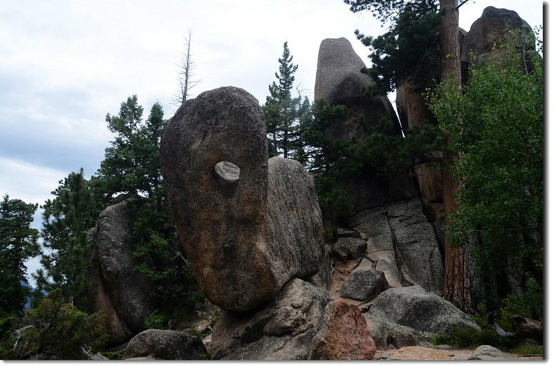 11:43 經過幾處小“之”字彎路後抵達一處景點~ Paul Bunyan's boot(Paul Bunyan的長靴),這裡距登山口大約1.4哩;Paul Bunyan是流傳於美國邊地故事的一位伐木巨人的名字,而這塊大石頭某角度看也真像極一隻大長靴,當然也只有這位伐木巨人才用得著這隻大長靴了!
