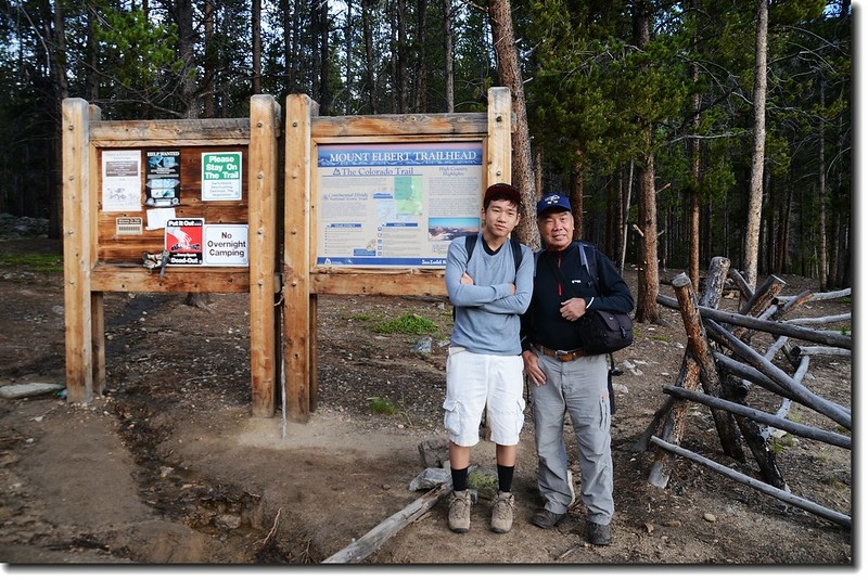 07:30 抵達Colorado Trail & Mount Elbert Trail junction,此地海拔約10,560呎/3,219公尺,距登山口約一哩路;