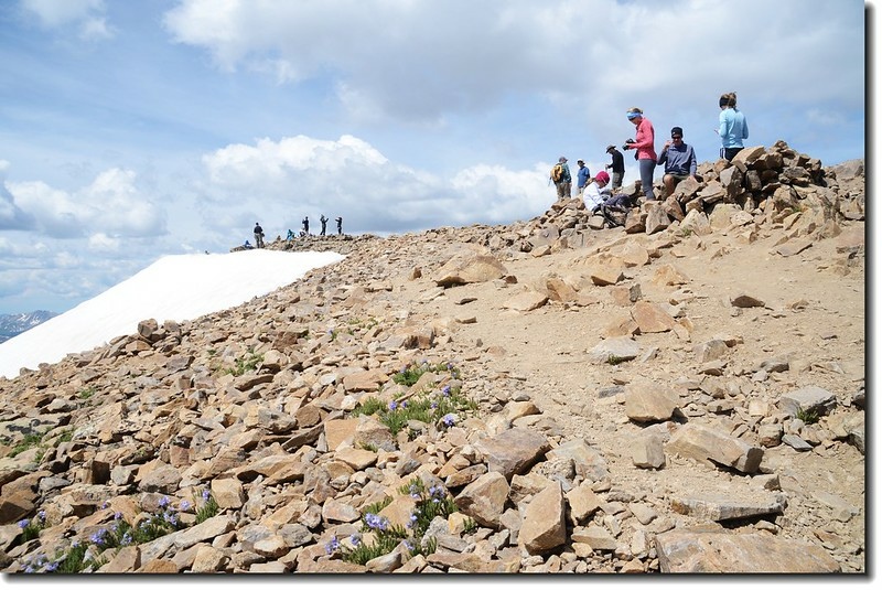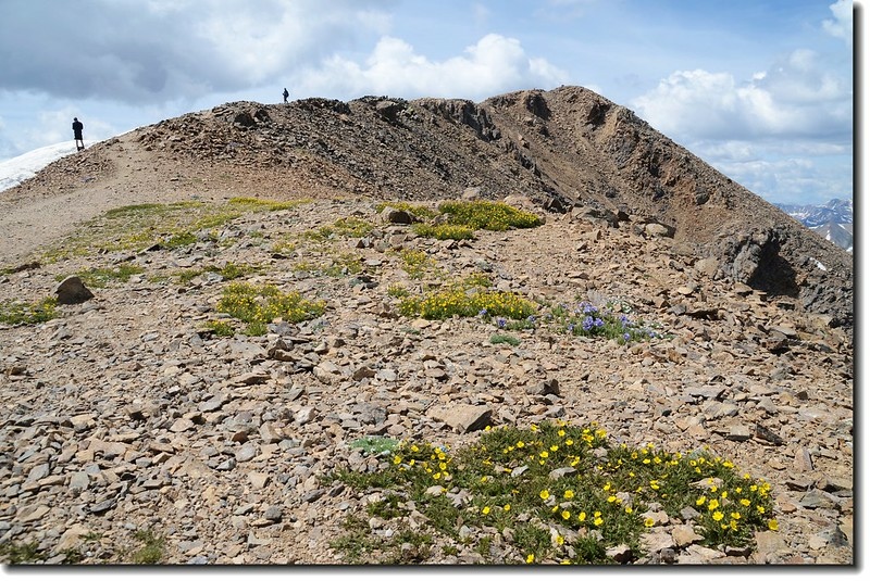 At 13,900', near the flat spot on the ridge, 550' of easy hiking remains