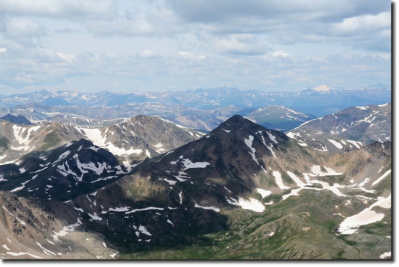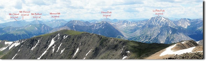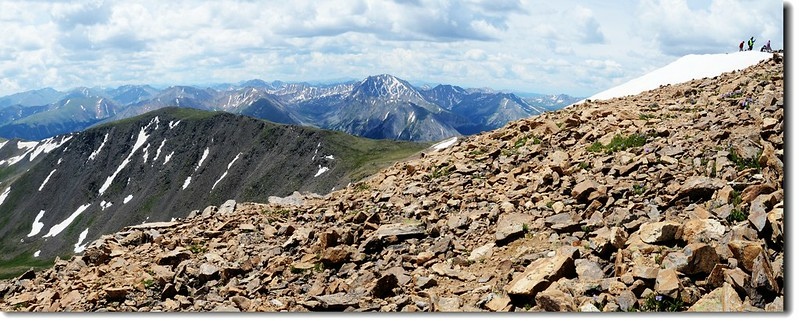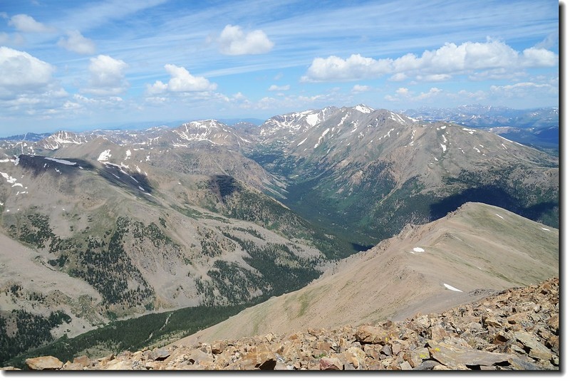 On the summit, looking northwest to Mt. Oklahoma (L) & Mt. Massive