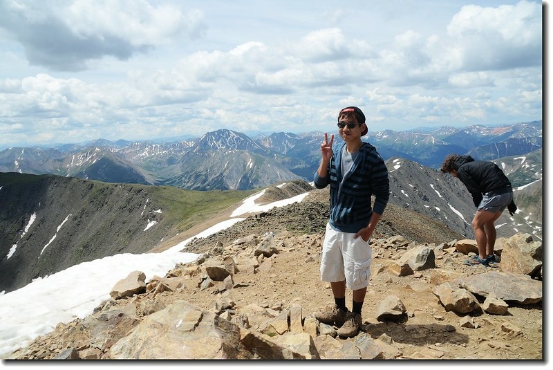 Matthew on the summit of Mt. Elbert, This is Matthew's 13th fourteener