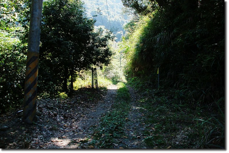 7.5K 看路況不是很好,將車停在一岔路口,電線桿編號“四號山分77”附近(其實高底盤車一路開到電線桿“四號山分141”沒問題,四傳車更可開到最後工寮上去不遠處)。