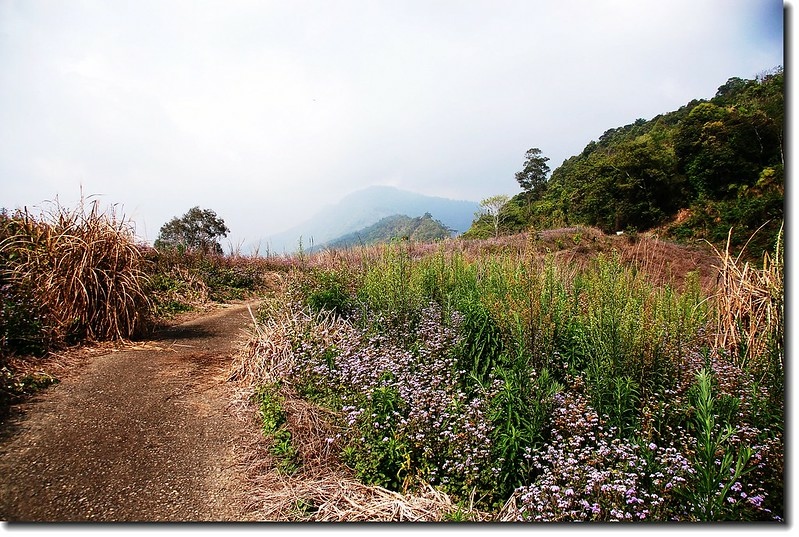 14:54 停車處出發,跨過鐵鍊沿產道上行;兩旁是已荒廢的薑園。