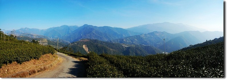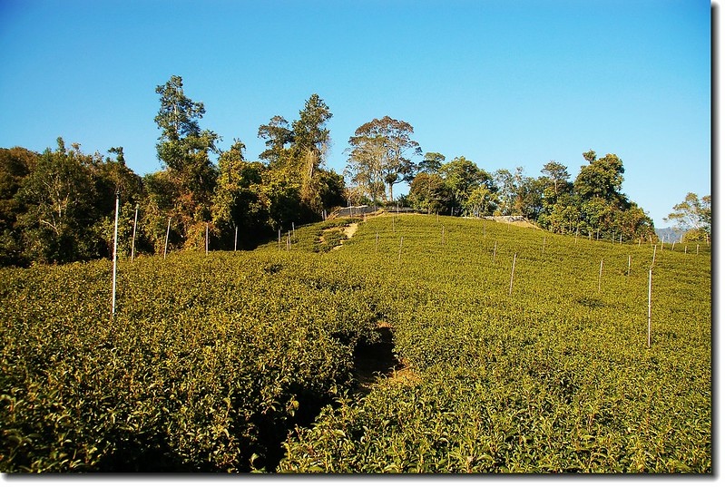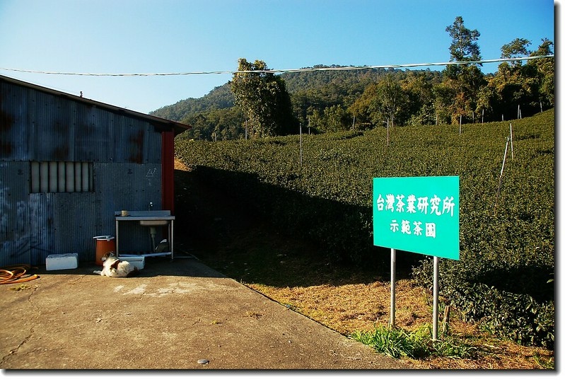 原路回到7.1K電線桿“大同枝142”處右轉,一路往茶園區農路走約500公尺抵幾戶農家,穿越農戶再行約50公尺抵農路終點停車(好像有黑色大蓄水桶,趕時間沒注意看);左入茶園區,棚架鐵柱上有往三角點記號,並註明約80公尺。