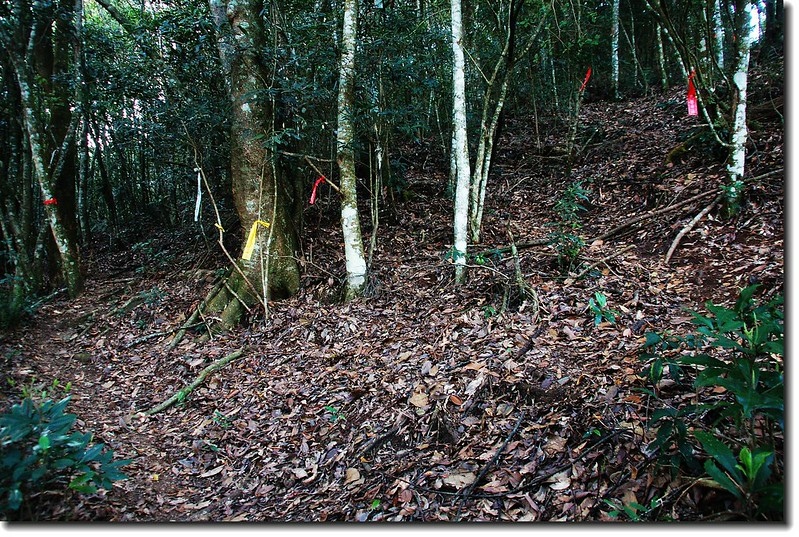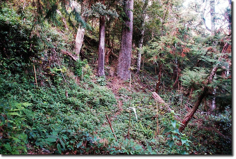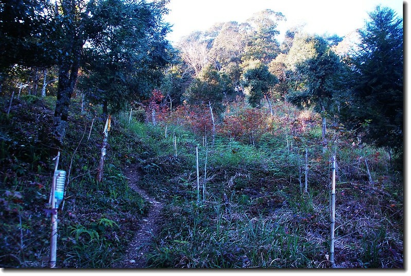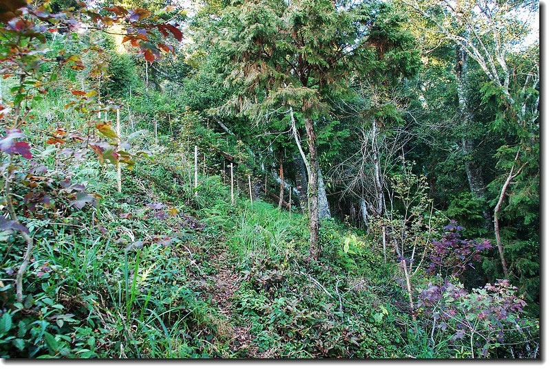 我取右陡上,一路皆沿開墾植栽區上登,很陡。